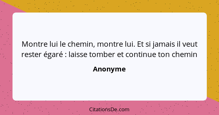 Montre lui le chemin, montre lui. Et si jamais il veut rester égaré : laisse tomber et continue ton chemin