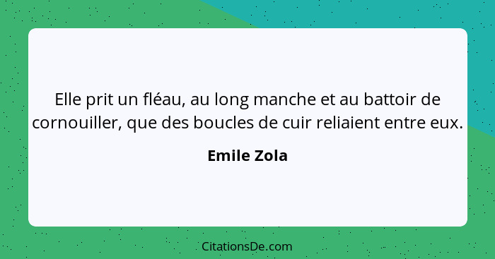 Elle prit un fléau, au long manche et au battoir de cornouiller, que des boucles de cuir reliaient entre eux.