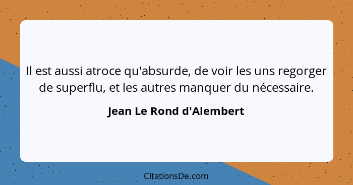 Il est aussi atroce qu'absurde, de voir les uns regorger de superflu, et les autres manquer du nécessaire.
