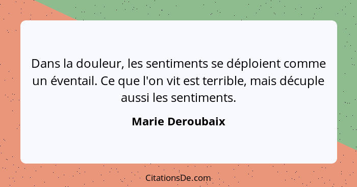 Dans la douleur, les sentiments se déploient comme un éventail. Ce que l'on vit est terrible, mais décuple aussi les sentiments.