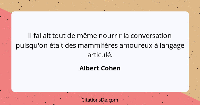 Il fallait tout de même nourrir la conversation puisqu'on était des mammifères amoureux à langage articulé.