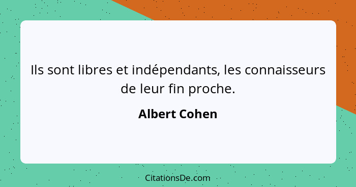 Ils sont libres et indépendants, les connaisseurs de leur fin proche.