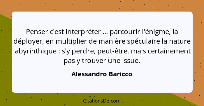 Penser c'est interpréter ... parcourir l'énigme, la déployer, en multiplier de manière spéculaire la nature labyrinthique : s'y perdre, peut-être, mais certainement pas y trouver une issue.