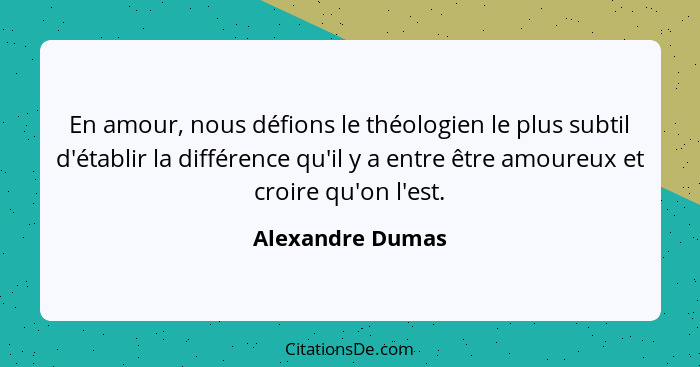 En amour, nous défions le théologien le plus subtil d'établir la différence qu'il y a entre être amoureux et croire qu'on l'est.