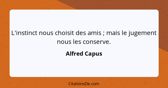 L'instinct nous choisit des amis ; mais le jugement nous les conserve.