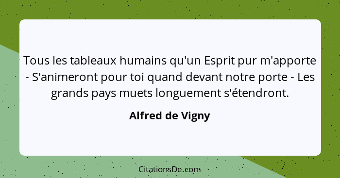 Tous les tableaux humains qu'un Esprit pur m'apporte - S'animeront pour toi quand devant notre porte - Les grands pays muets longuement s'étendront.