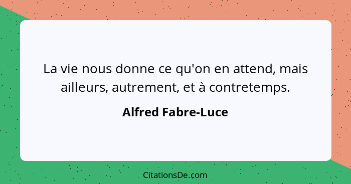 La vie nous donne ce qu'on en attend, mais ailleurs, autrement, et à contretemps.