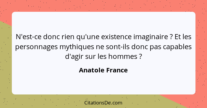 N'est-ce donc rien qu'une existence imaginaire ? Et les personnages mythiques ne sont-ils donc pas capables d'agir sur les hommes ?