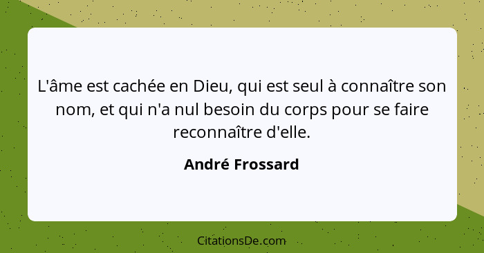 L'âme est cachée en Dieu, qui est seul à connaître son nom, et qui n'a nul besoin du corps pour se faire reconnaître d'elle.