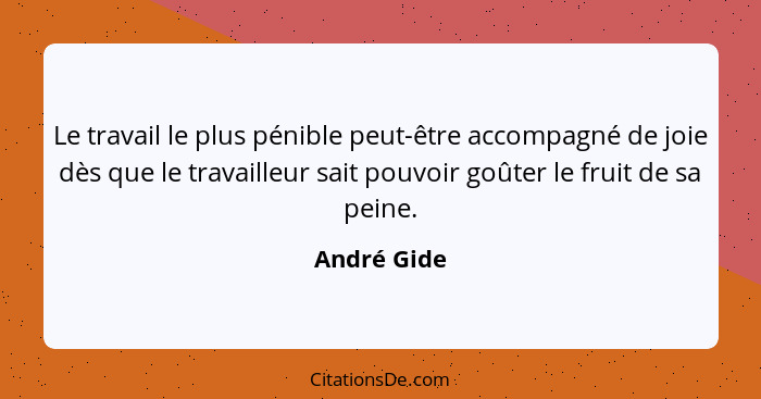 Le travail le plus pénible peut-être accompagné de joie dès que le travailleur sait pouvoir goûter le fruit de sa peine.
