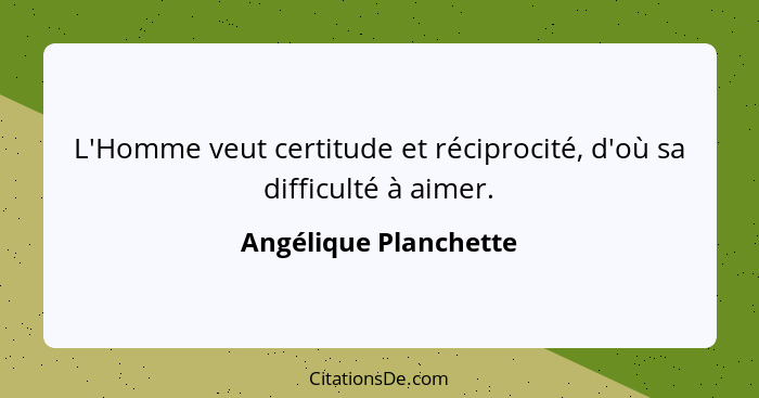 L'Homme veut certitude et réciprocité, d'où sa difficulté à aimer.