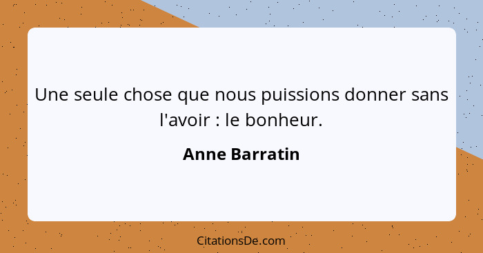 Une seule chose que nous puissions donner sans l'avoir : le bonheur.