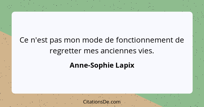 Ce n'est pas mon mode de fonctionnement de regretter mes anciennes vies.