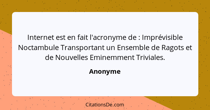 Internet est en fait l'acronyme de : Imprévisible Noctambule Transportant un Ensemble de Ragots et de Nouvelles Eminemment Triviales.