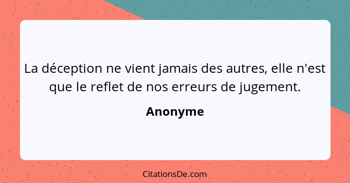 La déception ne vient jamais des autres, elle n'est que le reflet de nos erreurs de jugement.