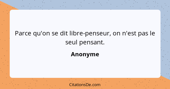 Parce qu'on se dit libre-penseur, on n'est pas le seul pensant.