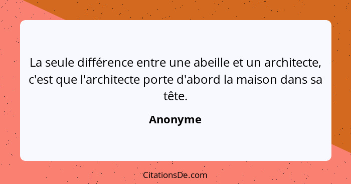 La seule différence entre une abeille et un architecte, c'est que l'architecte porte d'abord la maison dans sa tête.