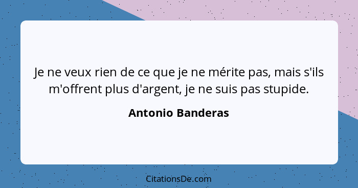 Je ne veux rien de ce que je ne mérite pas, mais s'ils m'offrent plus d'argent, je ne suis pas stupide.