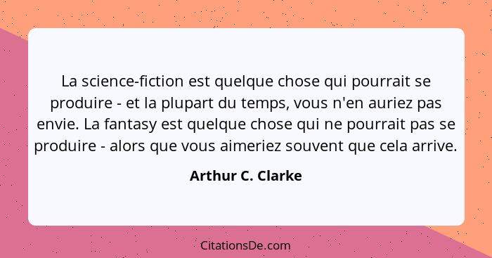 La science-fiction est quelque chose qui pourrait se produire - et la plupart du temps, vous n'en auriez pas envie. La fantasy est quelque chose qui ne pourrait pas se produire - alors que vous aimeriez souvent que cela arrive.