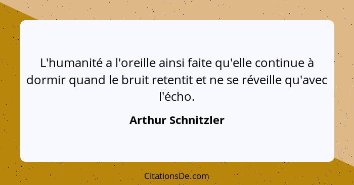 L'humanité a l'oreille ainsi faite qu'elle continue à dormir quand le bruit retentit et ne se réveille qu'avec l'écho.