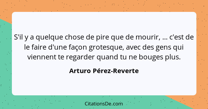 S'il y a quelque chose de pire que de mourir, ... c'est de le faire d'une façon grotesque, avec des gens qui viennent te regarder quand tu ne bouges plus.