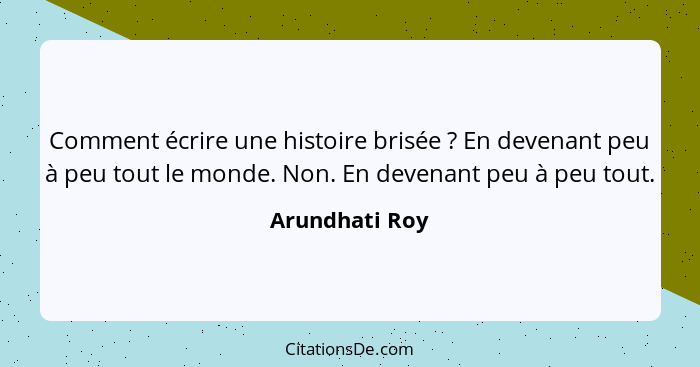 Comment écrire une histoire brisée ? En devenant peu à peu tout le monde. Non. En devenant peu à peu tout.