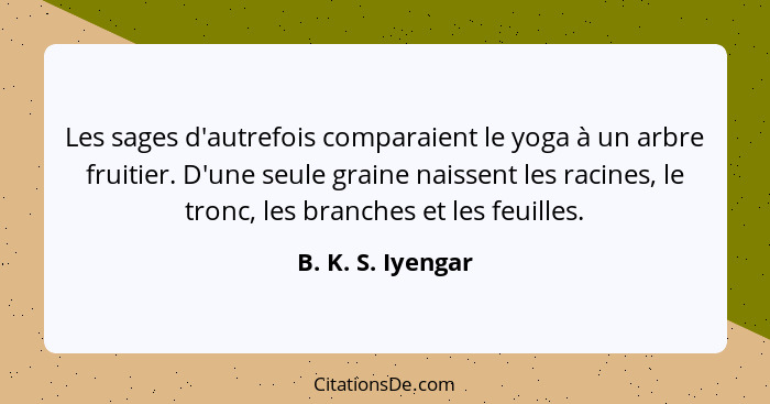 Les sages d'autrefois comparaient le yoga à un arbre fruitier. D'une seule graine naissent les racines, le tronc, les branches et les feuilles.