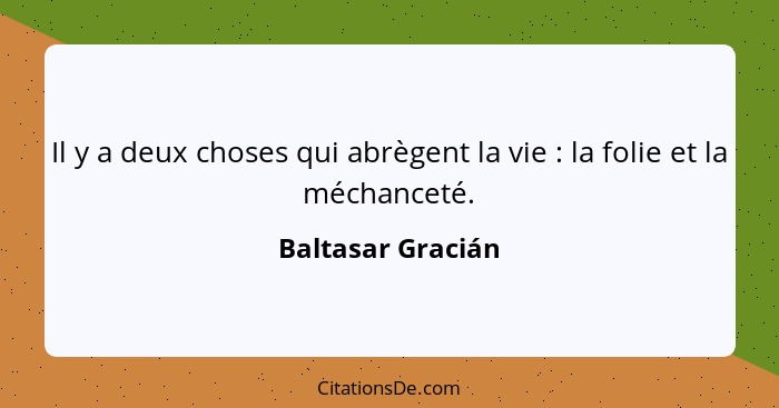 Il y a deux choses qui abrègent la vie : la folie et la méchanceté.
