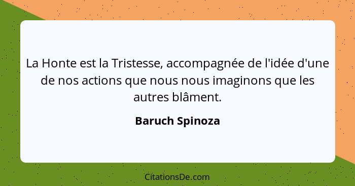 La Honte est la Tristesse, accompagnée de l'idée d'une de nos actions que nous nous imaginons que les autres blâment.