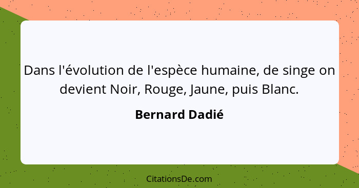 Dans l'évolution de l'espèce humaine, de singe on devient Noir, Rouge, Jaune, puis Blanc.