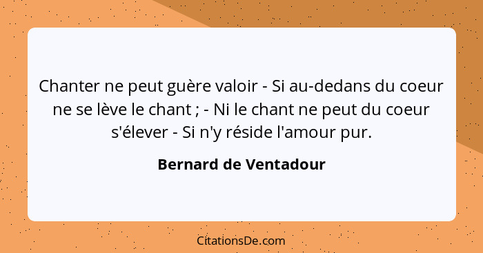 Chanter ne peut guère valoir - Si au-dedans du coeur ne se lève le chant ; - Ni le chant ne peut du coeur s'élever - Si n'y réside l'amour pur.