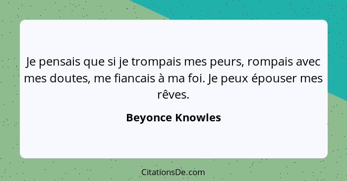 Je pensais que si je trompais mes peurs, rompais avec mes doutes, me fiancais à ma foi. Je peux épouser mes rêves.