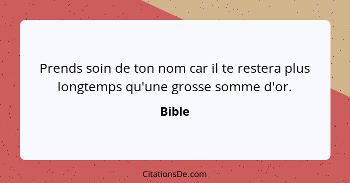 Prends soin de ton nom car il te restera plus longtemps qu'une grosse somme d'or.