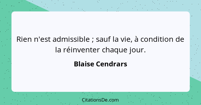 Rien n'est admissible ; sauf la vie, à condition de la réinventer chaque jour.