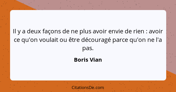 Il y a deux façons de ne plus avoir envie de rien : avoir ce qu'on voulait ou être découragé parce qu'on ne l'a pas.