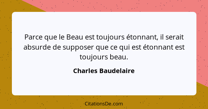 Parce que le Beau est toujours étonnant, il serait absurde de supposer que ce qui est étonnant est toujours beau.