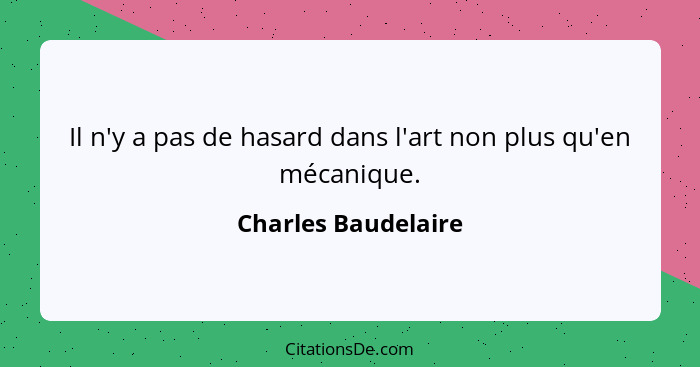 Il n'y a pas de hasard dans l'art non plus qu'en mécanique.