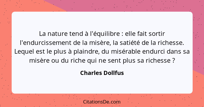 La nature tend à l'équilibre : elle fait sortir l'endurcissement de la misère, la satiété de la richesse. Lequel est le plus à plaindre, du misérable endurci dans sa misère ou du riche qui ne sent plus sa richesse ?