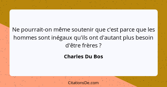 Ne pourrait-on même soutenir que c'est parce que les hommes sont inégaux qu'ils ont d'autant plus besoin d'être frères ?