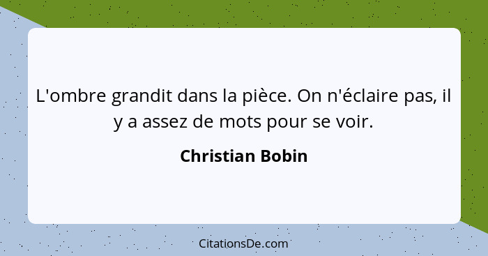 L'ombre grandit dans la pièce. On n'éclaire pas, il y a assez de mots pour se voir.