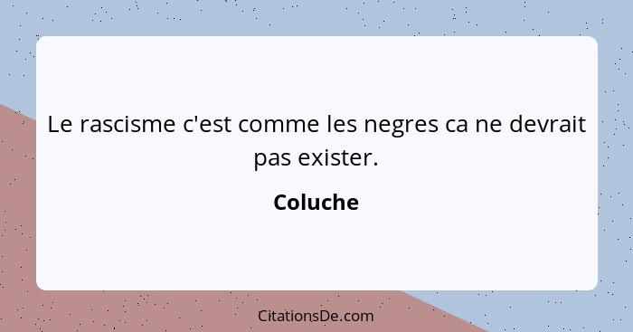 Le rascisme c'est comme les negres ca ne devrait pas exister.
