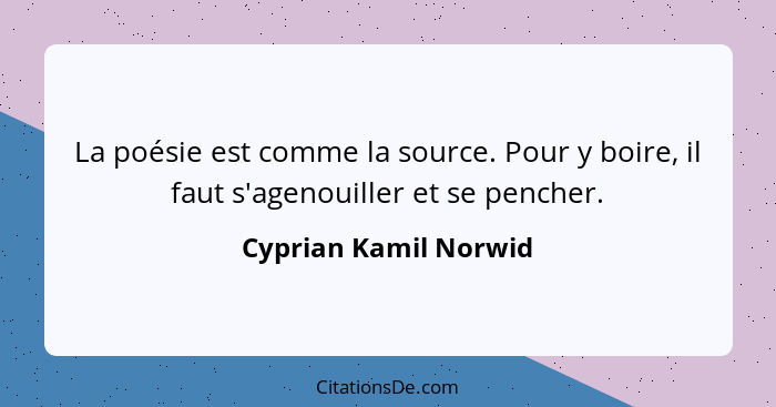 La poésie est comme la source. Pour y boire, il faut s'agenouiller et se pencher.