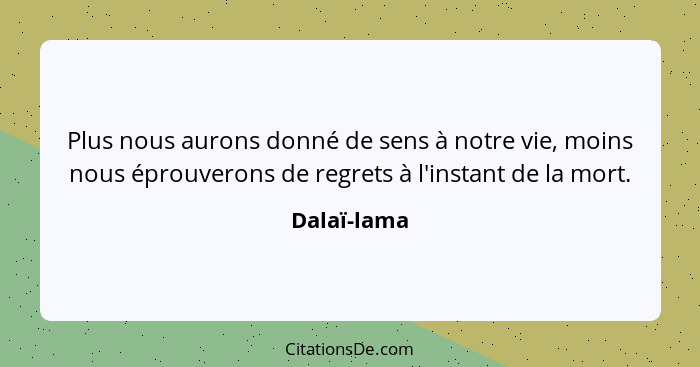Plus nous aurons donné de sens à notre vie, moins nous éprouverons de regrets à l'instant de la mort.