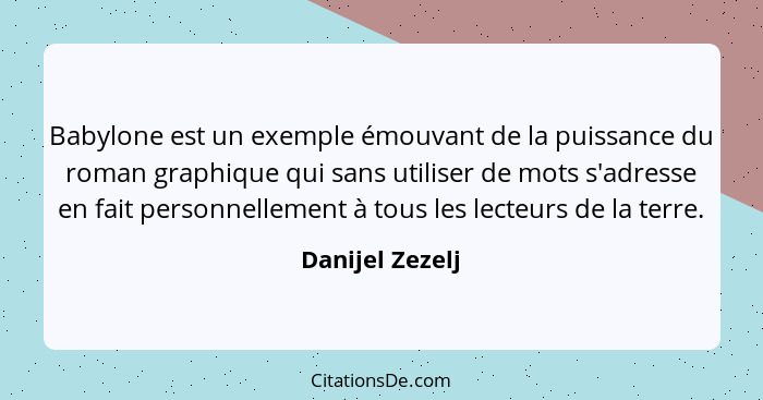 Babylone est un exemple émouvant de la puissance du roman graphique qui sans utiliser de mots s'adresse en fait personnellement à tous les lecteurs de la terre.