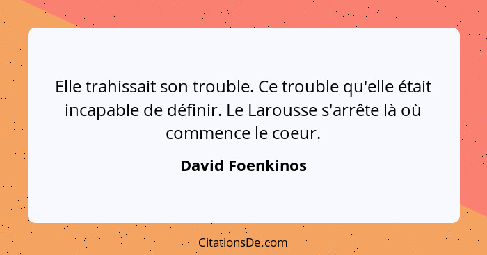 Elle trahissait son trouble. Ce trouble qu'elle était incapable de définir. Le Larousse s'arrête là où commence le coeur.