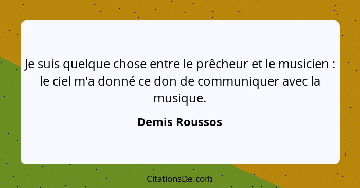 Je suis quelque chose entre le prêcheur et le musicien : le ciel m'a donné ce don de communiquer avec la musique.