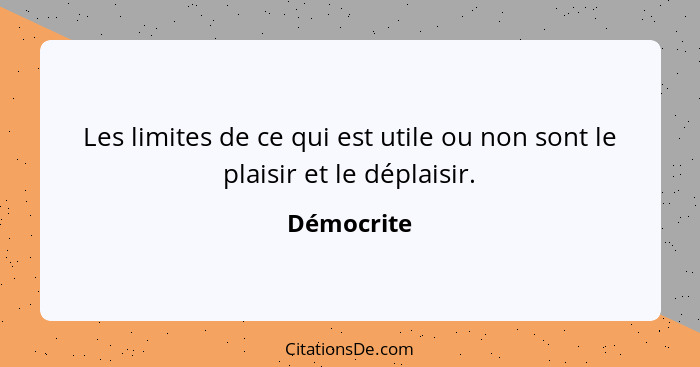 Les limites de ce qui est utile ou non sont le plaisir et le déplaisir.