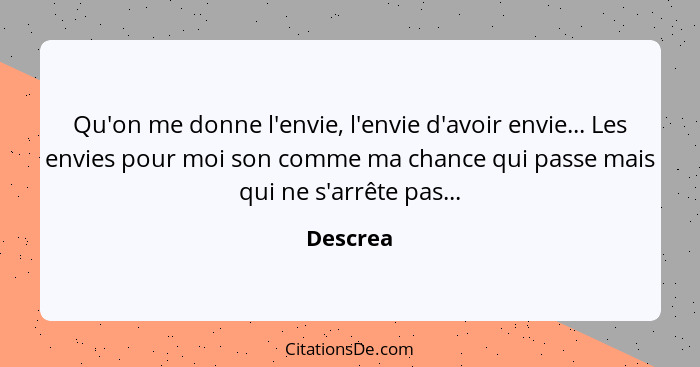 Qu'on me donne l'envie, l'envie d'avoir envie... Les envies pour moi son comme ma chance qui passe mais qui ne s'arrête pas...