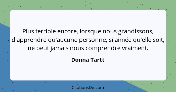 Plus terrible encore, lorsque nous grandissons, d'apprendre qu'aucune personne, si aimée qu'elle soit, ne peut jamais nous comprendre vraiment.