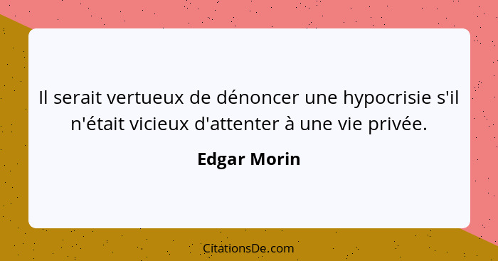 Il serait vertueux de dénoncer une hypocrisie s'il n'était vicieux d'attenter à une vie privée.
